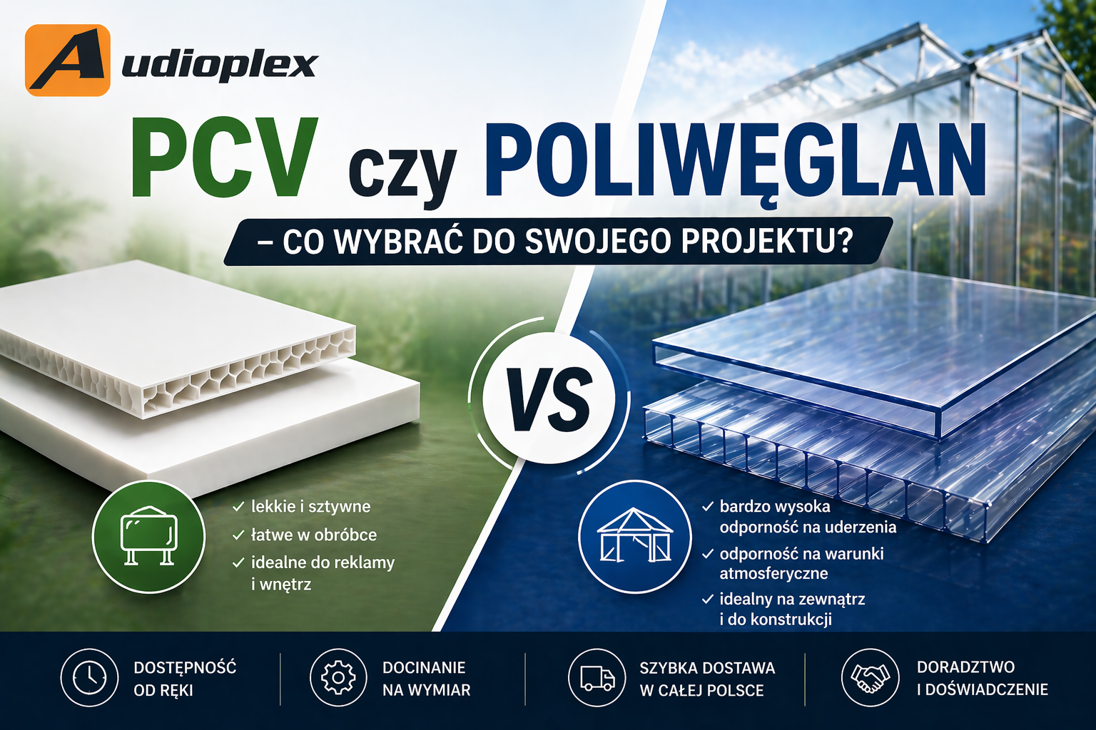 PCV czy poliwęglan to jedno z najczęstszych porównań pojawiających się przy wyborze tworzyw do zastosowań budowlanych i reklamowych. Choć oba materiały są powszechnie stosowane i łatwo dostępne, różnią się właściwościami na tyle, że ich niewłaściwy dobór może prowadzić do szybszego zużycia, problemów w użytkowaniu lub niepotrzebnych kosztów. Dlatego przed podjęciem decyzji warto dokładnie przeanalizować, w jakich warunkach materiał będzie wykorzystywany i jakie wymagania musi spełniać.